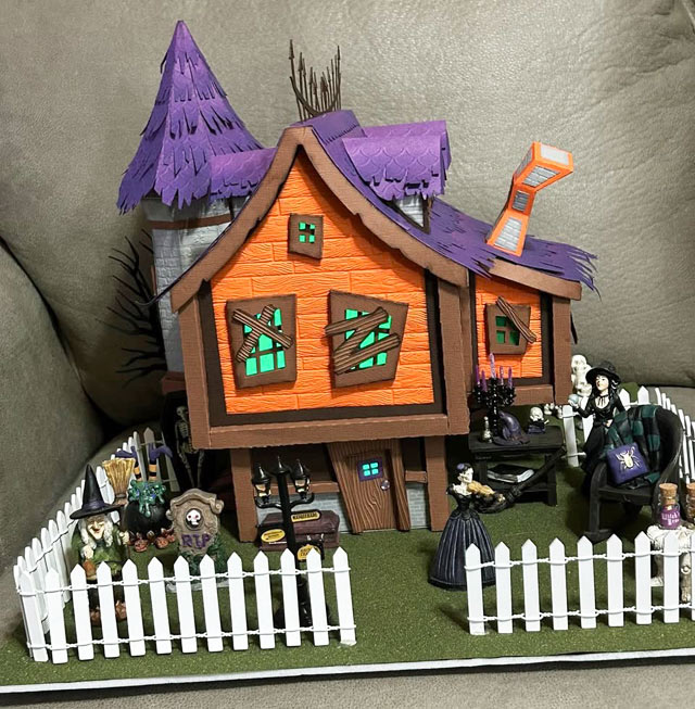 Where many of these submissions are spooky and scary, Lina's little house seems to convey a sense of play and exuberance for the season and the holiday! That is a welcoming house and skeleton!
