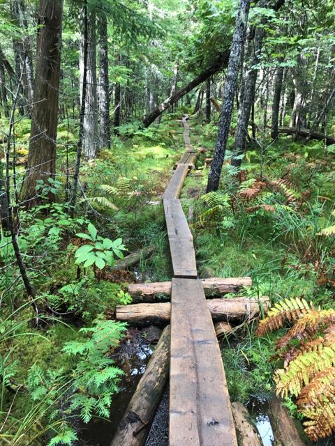 | Bog we crossed the day Lynn entered Baxter State Park. I hiked in a couple of miles to meet Lynn and her friends. They hiked 24.5 miles that day, most of it in the rain. |