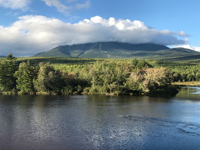 This photo is the first view we had of Mt. Katahdin from the Abol Bridge Campground just outside Baxter State Park.