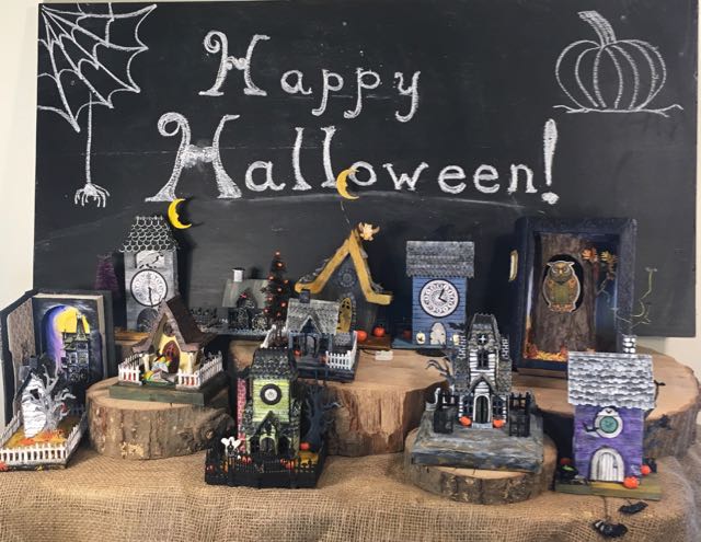 Well, the Halloween houses are done for this year. I am pretty happy with the collection. I always hope to do more, but every house takes so long. I think I did one house that took only 2 days, but most take 2 weeks or more.