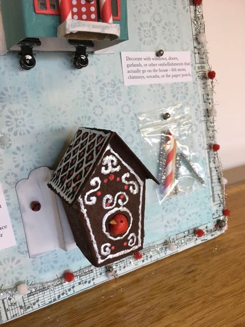 2. Decorate with windows, doors, garlands, or other embellishments that actually go on the house - felt snow, chimneys, wreaths, or the paper porch.