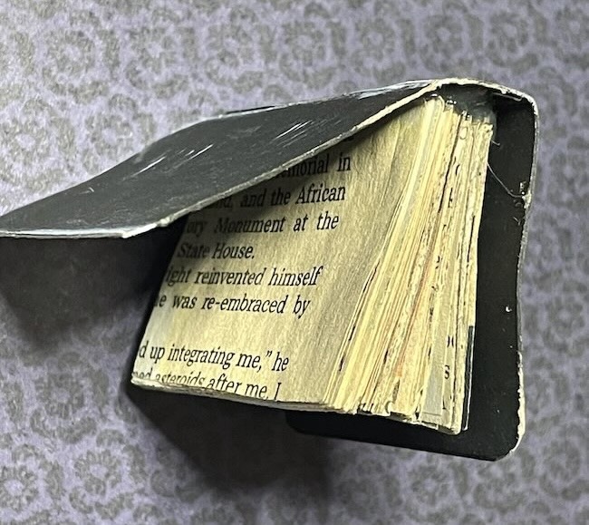 Of course, you can cut out the pages as shown in this book. I think I used cut newspaper for this book.